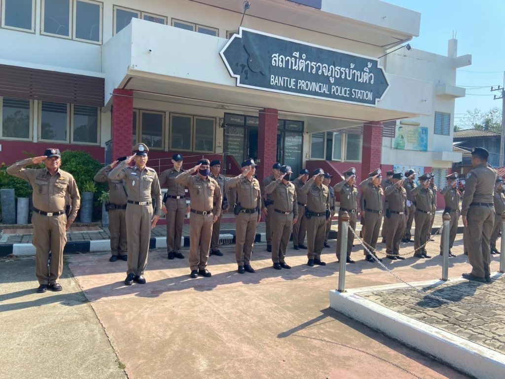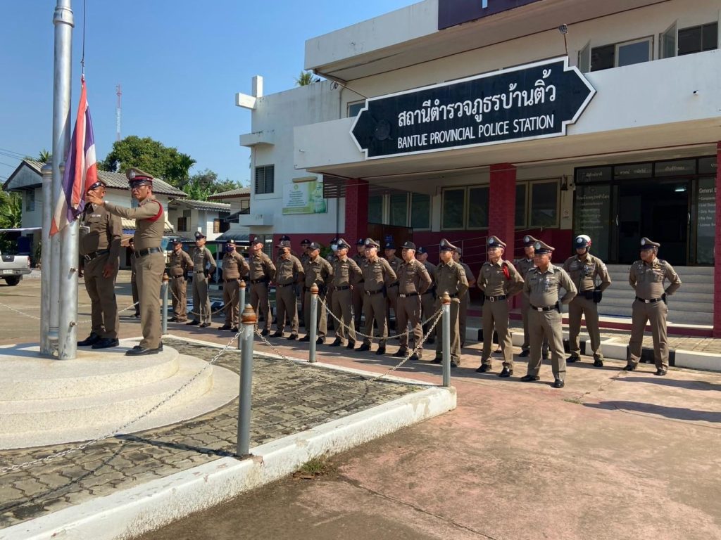 เมื่อวันที่ 11 มีนาคม 2568 เวลา 08.30 น. อำนวยการโดย พ.ต.อ.ณัฏฐพงษ์ แสนประสิทธิ์ ผกก.สภ.บ้านติ้ว เรียกข้าราชการตำรวจ สภ.บ้านติ้ว ทุกนาย ร่วมกิจกรรมเข้าแถวเคารพธงชาติ กล่าวอุดมคติ ตรวจระเบียบวินัย และความพร้อมในการปฏิบัติหน้าที่ของแต่ละสายงาน