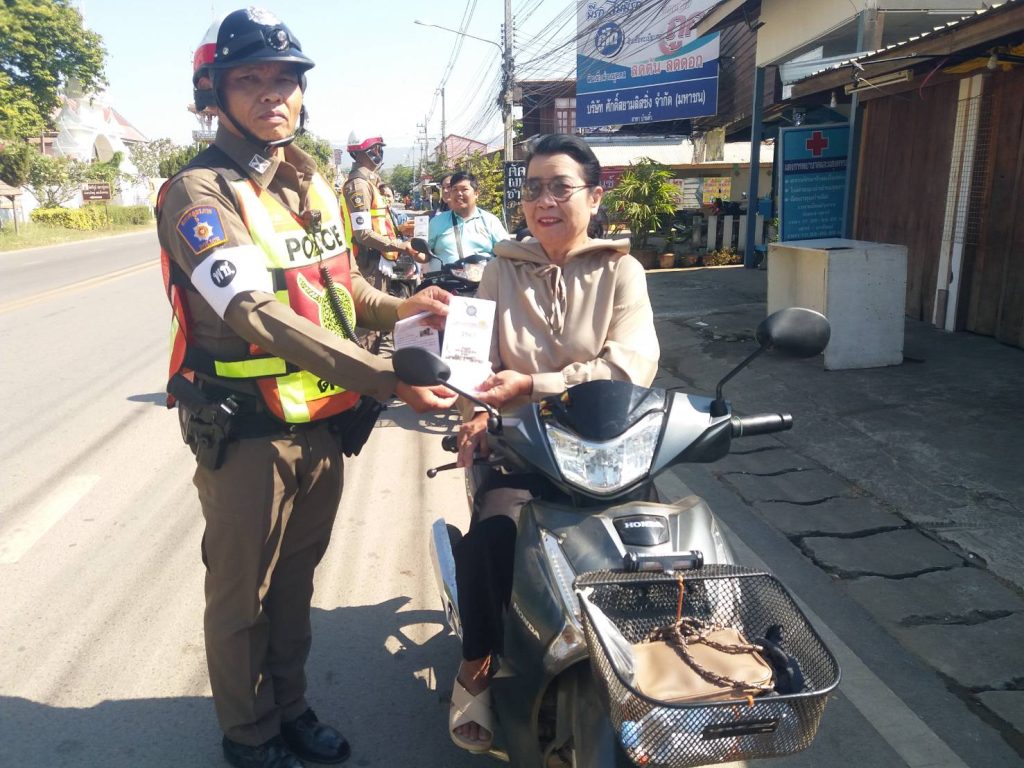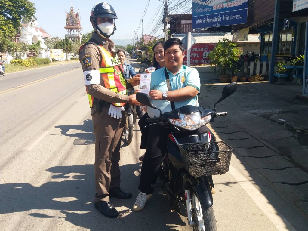 3.แจกเอกสารแผ่นพับ มาตรการความปลอดภัยทางถนนให้กับประชาชนผู้ขับขี่ยานพาหนะ ถนนสายหล่มสัก-บ้านติ้ว บริเวณศูนย์จราจรบ้านติ้ว