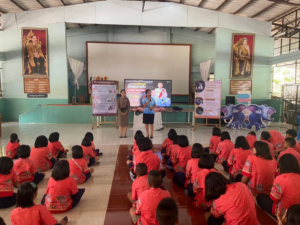 เมื่อวันที่ 8 มี.ค.67 เวลา 10.30 – 14.00 น. อำนวยการโดย พ.ต.อ.ณัฏฐพงษ์ แสนประสิทธิ์ ผกก.สภ.บ้านติ้ว มอบหมายให้ พ.ต.ท.ประสิทธิ์ วงษา รอง ผกก.ป.สภ.บ้านติ้ว, พ.ต.ท.ประธาน กิตติประพันธ์ สวป.สภ.บ้านติ้ว พร้อมด้วยข้าราชการตำรวจสภ.บ้านติ้ว ร่วมกันบรรยายให้ความรู้ หนี ซ่อน สู้ แก่นักเรียนโรงเรียนบ้านท่าช้าง ต.ห้วยไร่ อ.หล่มสัก จ.เพชรบูรณ์ มีนักเรียนเข้าร่วมกิจกรรม จำนวน 150 คน
