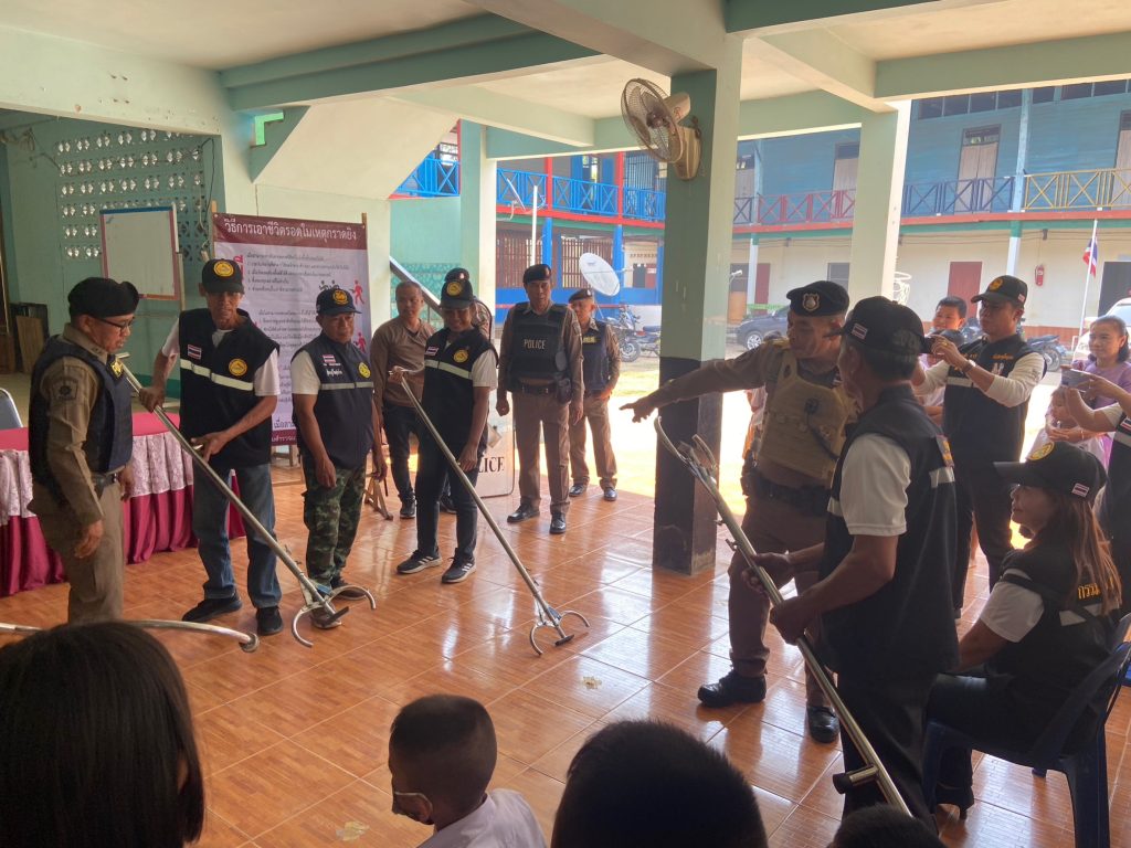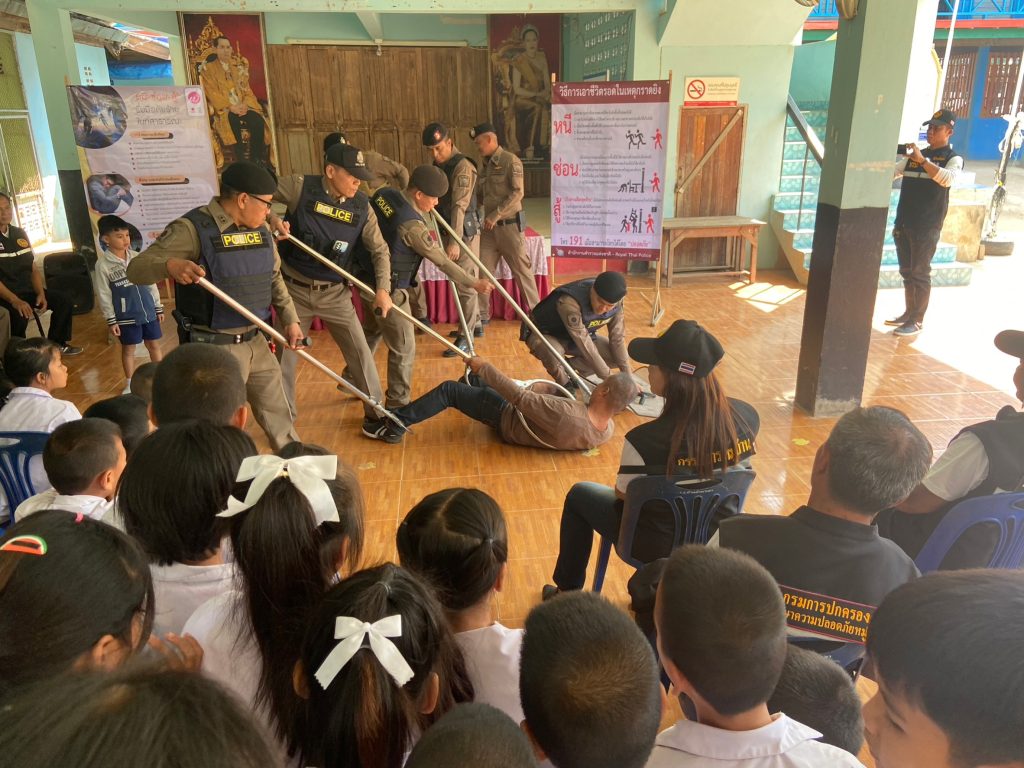 - ถ่ายทอดความรู้ การใช้ไม้ง่าม ระงับเหตุคนคลุ้มคลั่ง เพื่อบรรเทาความรุนแรงของสถานการณ์ ก่อนที่เจ้าหน้าที่ตำรวจเข้าไปดำเนินการ