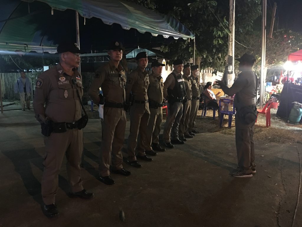 ปล่อยแถวเจ้าหน้าตำรวจรักษาความสงบเรียบร้อยงานวัดศรีภูมิ ต.บ้านติ้ว ซึ่งจัดให้มีคอนเสร์ตหมอรำ
