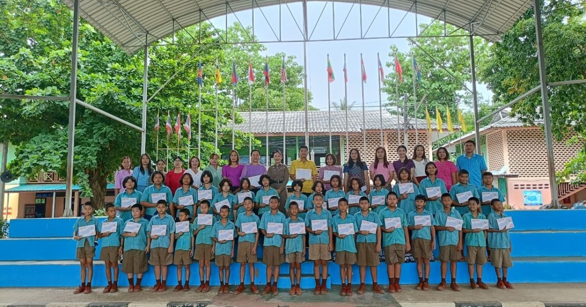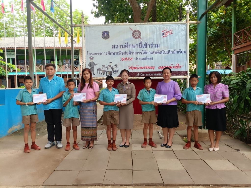เมื่อวันที่ 31 พ.ค.2567 เวลา 09.00 น. ภายใต้การอำนวยการสั่งการโดย พ.ต.อ.ณัฏฐพงษ์ แสนประสิทธิ์ ผกก.สภ.บ้านติ้ว, พ.ต.ท.ประสิทธิ์ วงษา รอง ผกก.ป.สภ.บ้านติ้ว มอบหมายให้ ด.ต.หญิงเสาวลักษณ์ วริวรรณ ผบ.หมู่(ป.) สภ.บ้านติ้ว(ครูตำรวจแดร์) ดำเนินการปิดโครงการ การศึกษาเพื่อต่อต้านการใช้ยาเสพติดในเด็กนักเรียน(D.A.R.E.) ประจำปีการศึกษา 2/2567 ร่วมกับนายอานันท์ หงส์พันธ์ุ ผอ.รร.ชุมชนบ้านติ้ว และคณะครู รร.บ้านติ้ว มอบวุฒิบัตร และรางวัลให้กับนักเรียน ชั้น ป.5 จำนวน 35 คน จนกิจกรรมสำเร็จไปด้วยดี