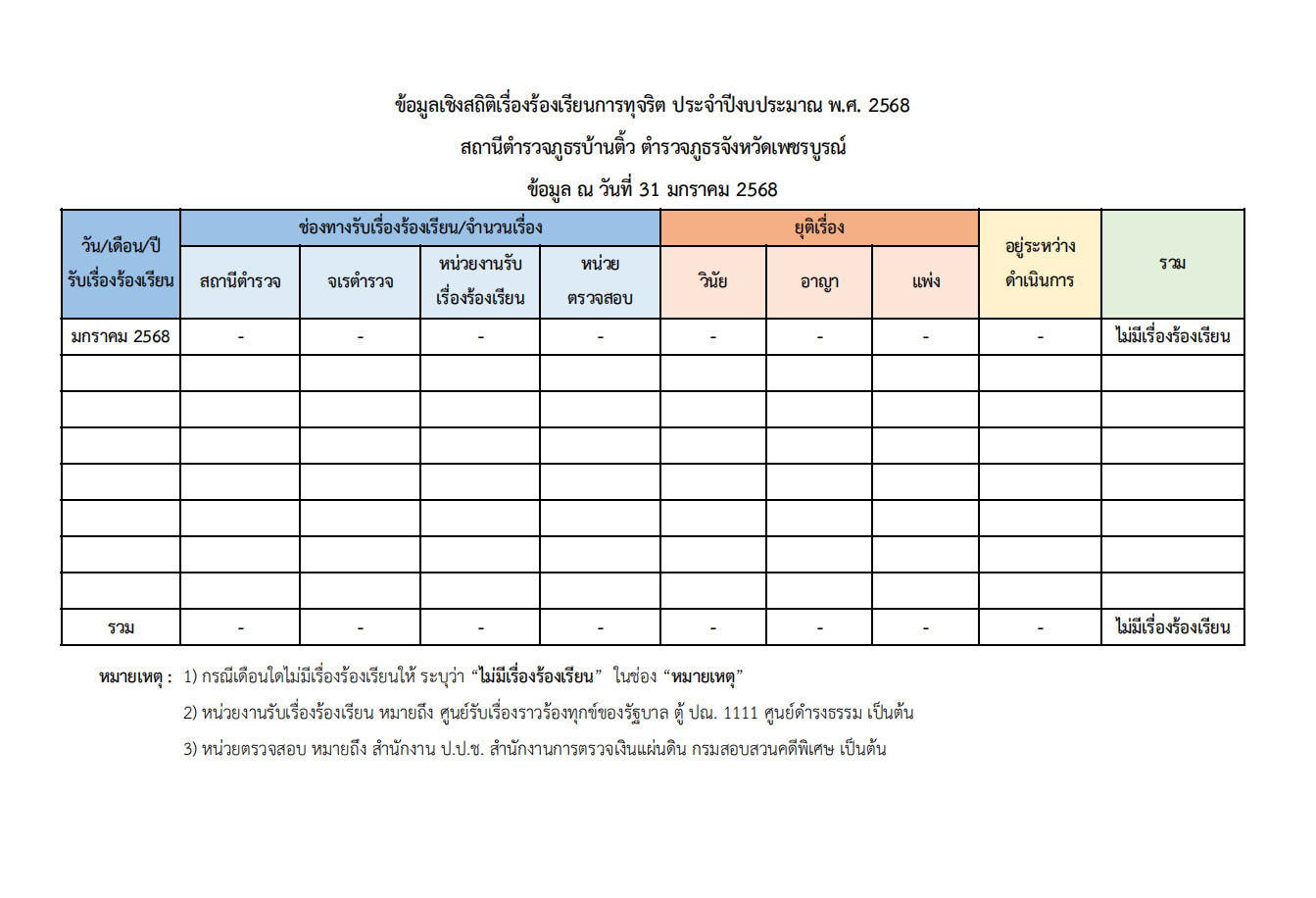 ข้อมูลเชิงสถิติเรื่องร้องเรียนการทุจริต ประจำเดือน มกราคม 2568