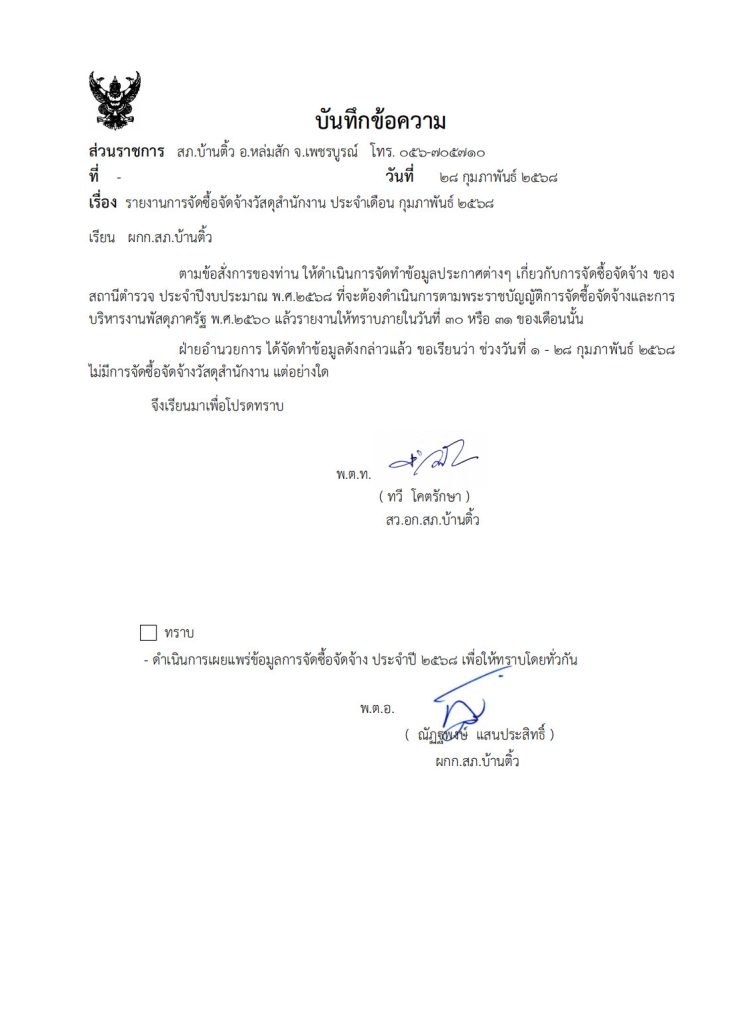 ประกาศ จัดซื้อวัสดุสำนักงาน ประจำเดือน กุมภาพันธ์ 2568