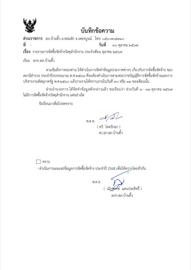 ประกาศ จัดซื้อวัสดุสำนักงาน ประจำเดือน ตุลาคม 2567
