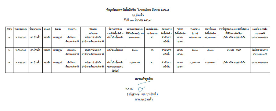 สรุปผลการจัดซื้อจัดจ้าง เดือน มีนาคม 2568