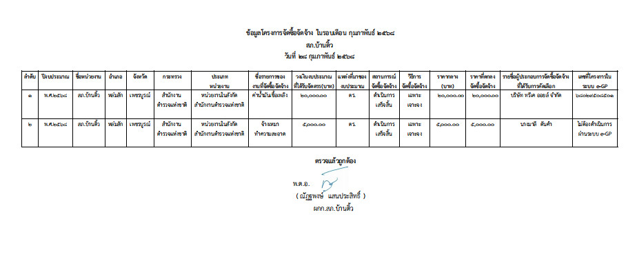 สรุปผลการจัดซื้อจัดจ้าง เดือน กุมภาพันธ์ 2568