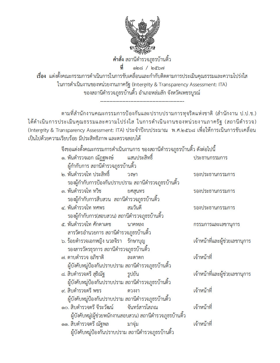 คุณธรรมและความโปร่งใสในการดำเนินงานของหน่วยงานภาครัฐ (Integrity and Transparency Assessment: ITA) ของสถานีตำรวจ ประจำปีงบประมาณ พ.ศ.2568