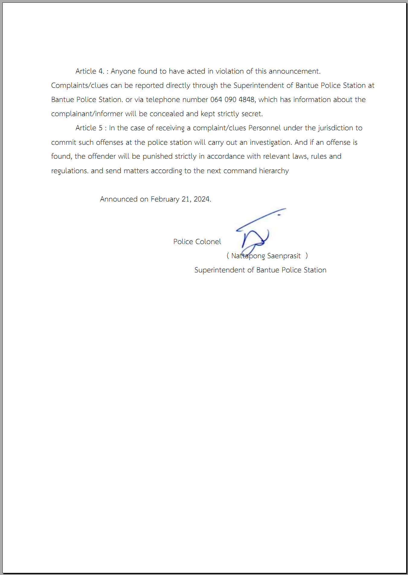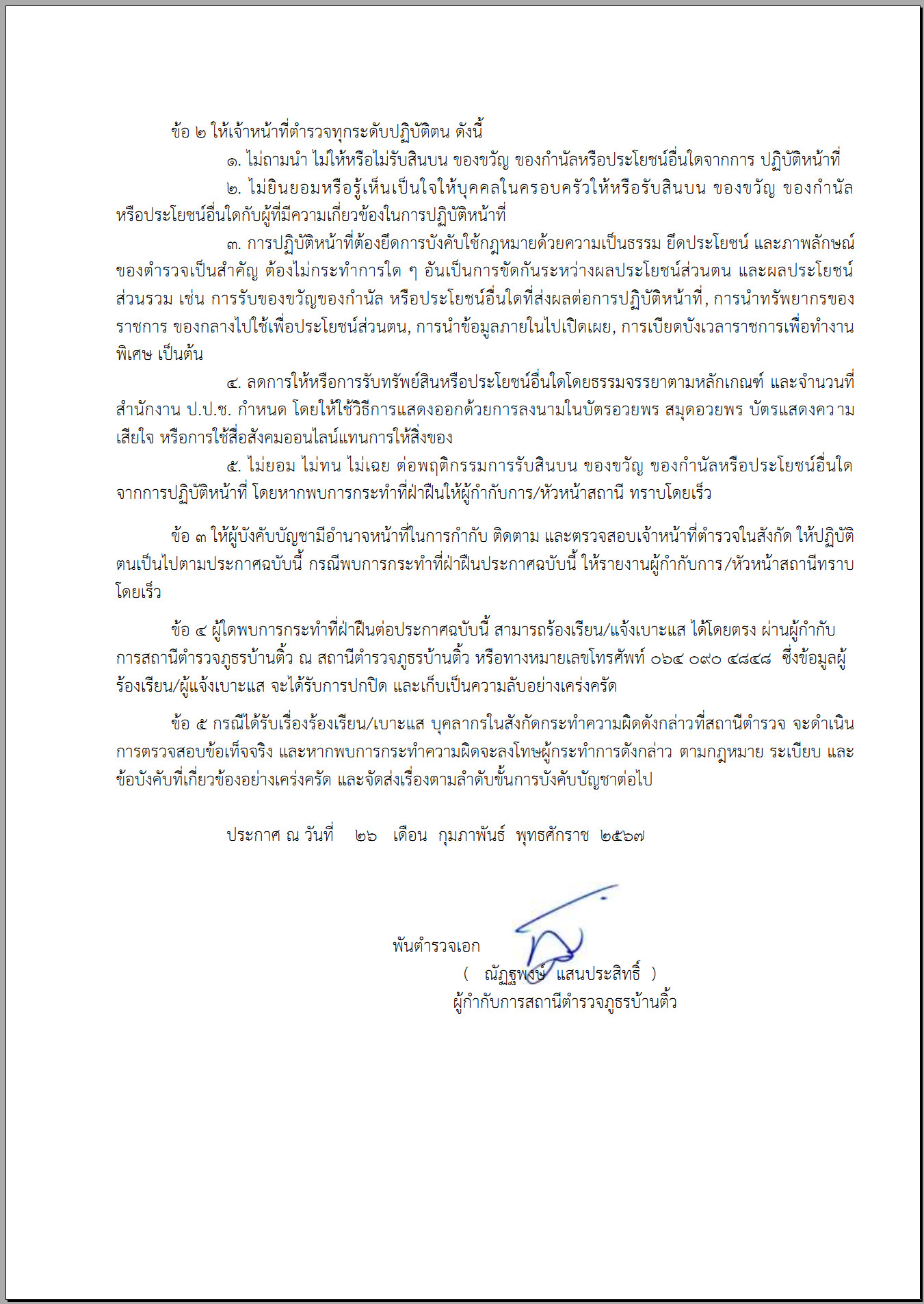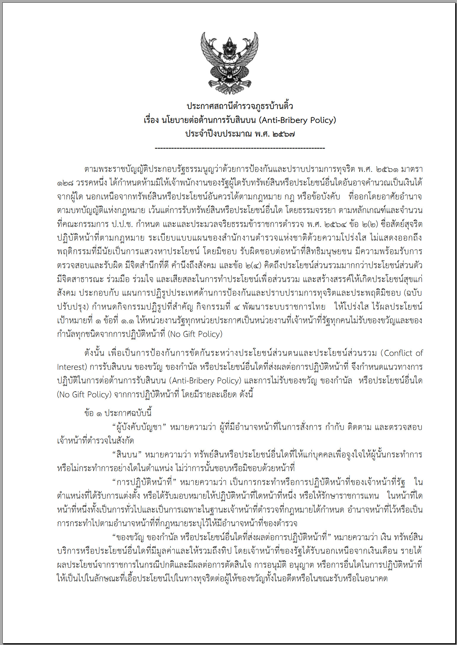 018 ประกาศนโยบายต่อต้านการรับสินบน
