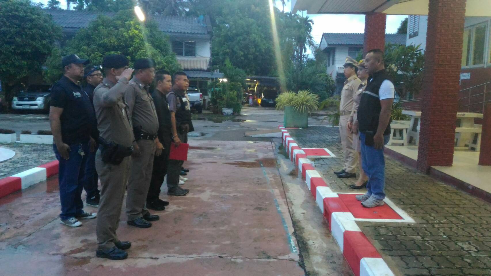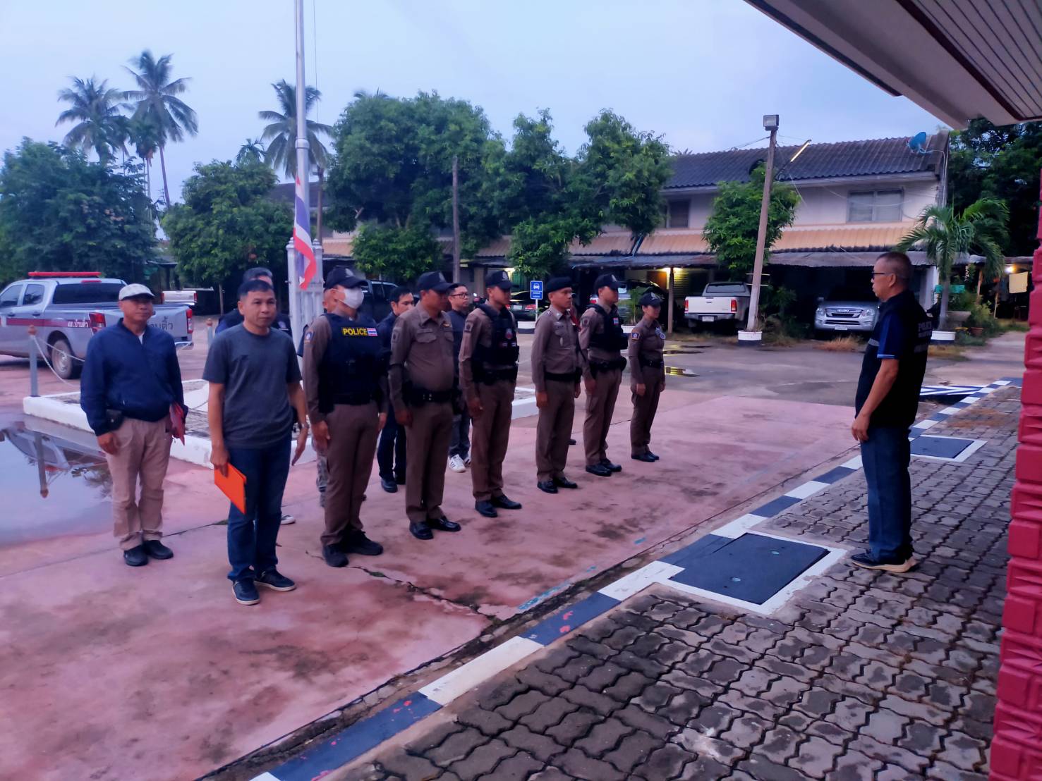 เรียกแถวสายตรวจสิบเวร เคารพธงชาติสวดมนต์ไหว้พระกล่าว ,คำปฏิญาณและอุดมคติตำรวจและมอบหมายภารกิจสายตรวจ