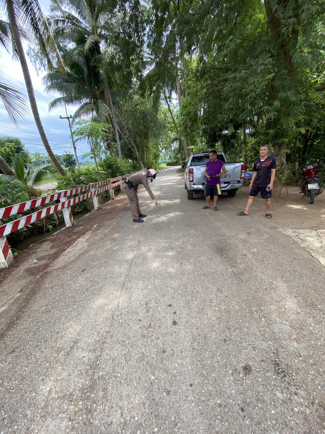 ชุดสอบสวน นำโดย ร.ต.อ.อำนาจ สุวรรณชาติ พงส.ออกตรวจที่เกิดเหตุคดีอุบัติเหตุรถเฉี่ยวชน